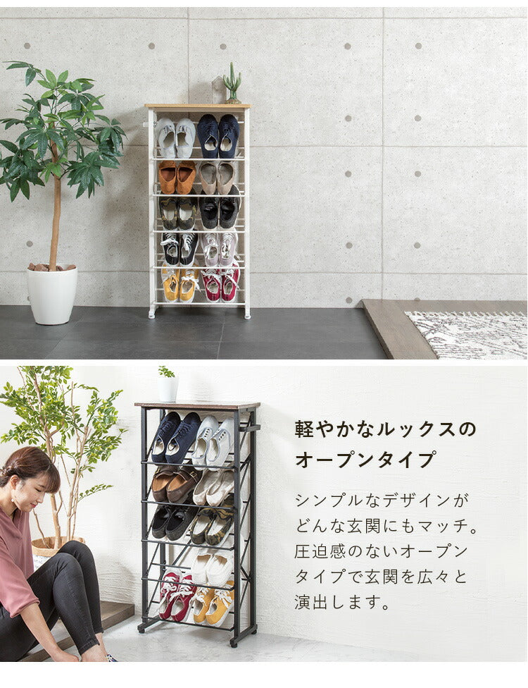 魅せるシューズラック 幅50cm 5段 スリム 省スペース 奥行25cm 最大10足 通気性 木目 バイカラー おしゃれ ナチュラル 北欧 モダン かわいい シューズラック 下駄箱 ラック オープンラック 傘立て 玄関収納