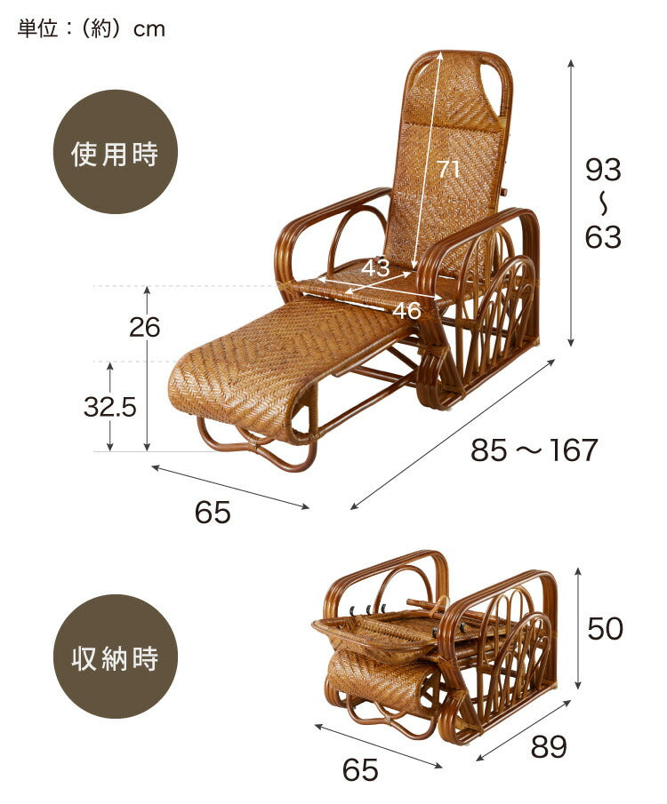 使用時:約幅65×奥行85~167×高さ63~93cm