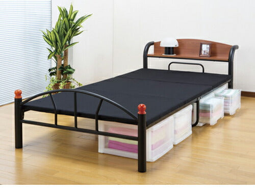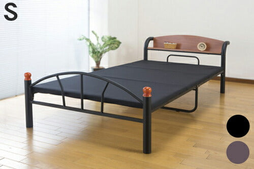 木製棚付き アイアンベッド 引出無し シングル ベッド スチールベッド アイアン 引き出し無し(代引不可)