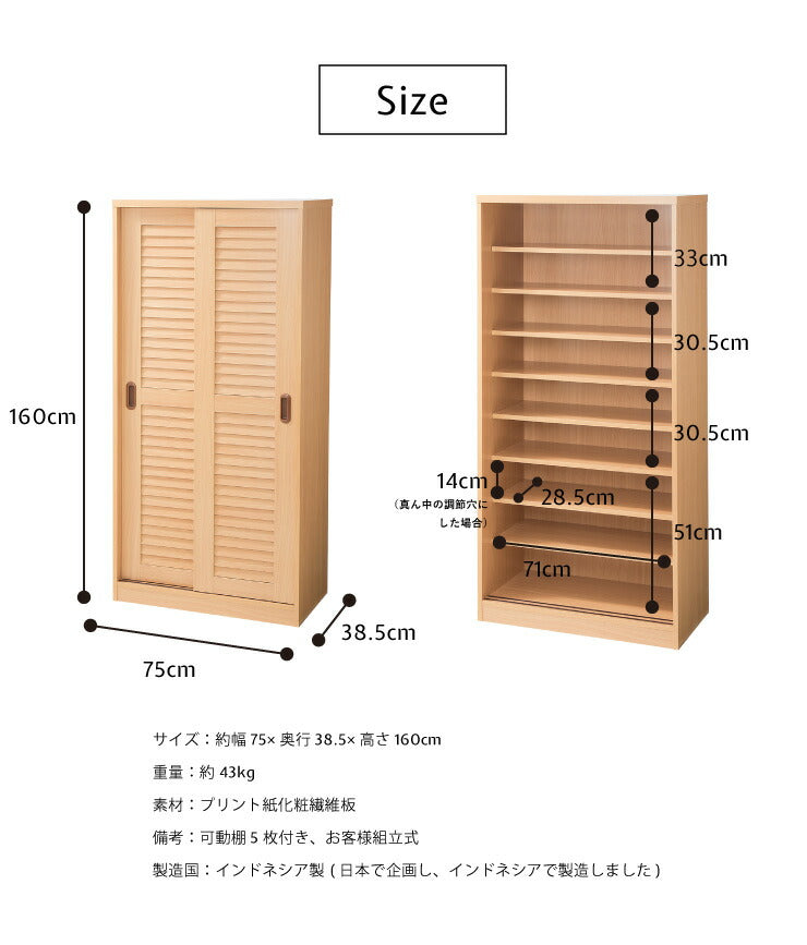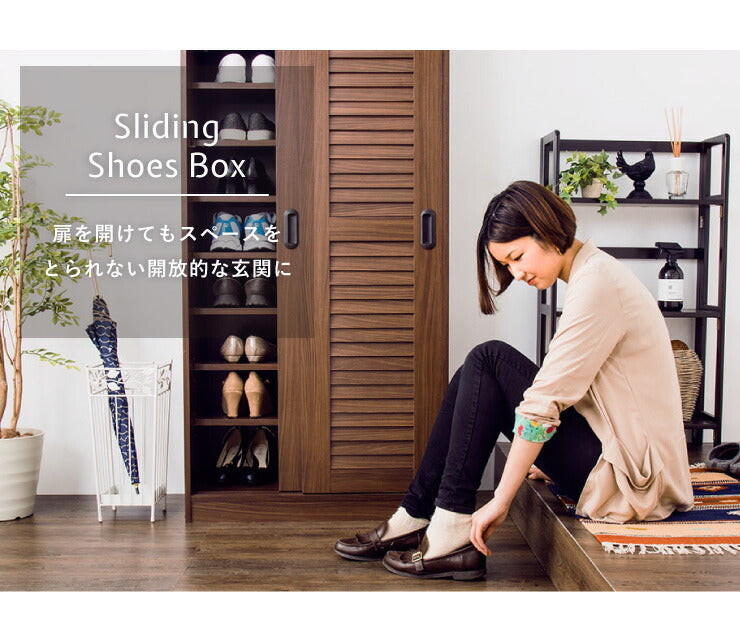 シューズボックス 引き戸 木製 幅75cm ルーバー 扉 玄関収納 下駄箱 大量収納 シューズラック (代引不可)