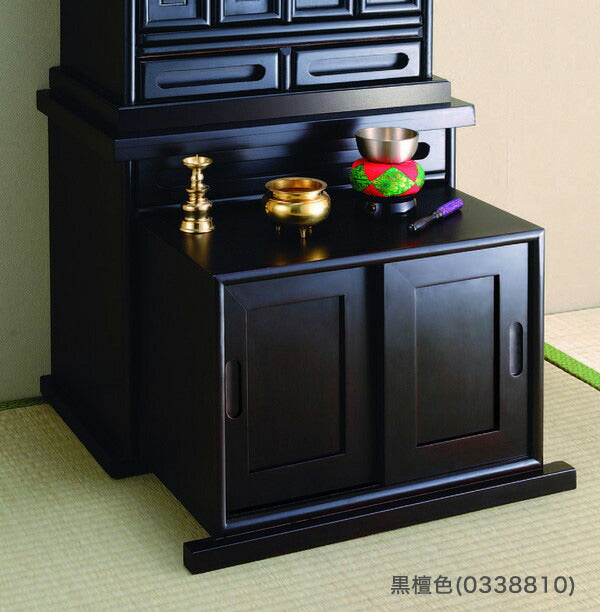 ●引き戸の部分は前にスライドさせれば台になり、読経やお供えに便利です。光沢のある表面仕上げが美しい仏壇下台。
