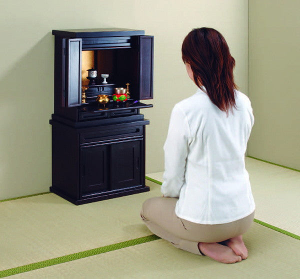 上置きタイプの仏壇に、便利なスライド式収納の下台。