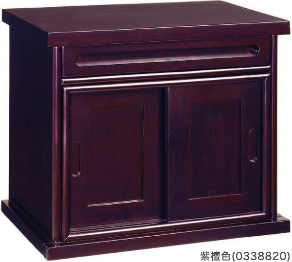 ●引き戸の部分は前にスライドさせれば台になり、読経やお供えに便利です。光沢のある表面仕上げが美しい仏壇下台。