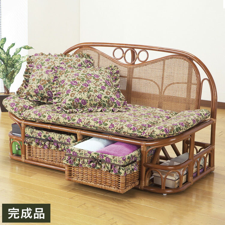 東京ラタン 天然籐ハイバックカウチソファ 幅120 クッション付き 引出し収納付き ラタン カウチソファー 収納ソファ ごろ寝ソファ(代引不可)