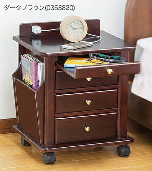 ナイトテーブル 天然木 リビングワゴン コンセント付 ベッドサイドテーブル ベッドワゴン 収納 キャスター付き(代引不可)