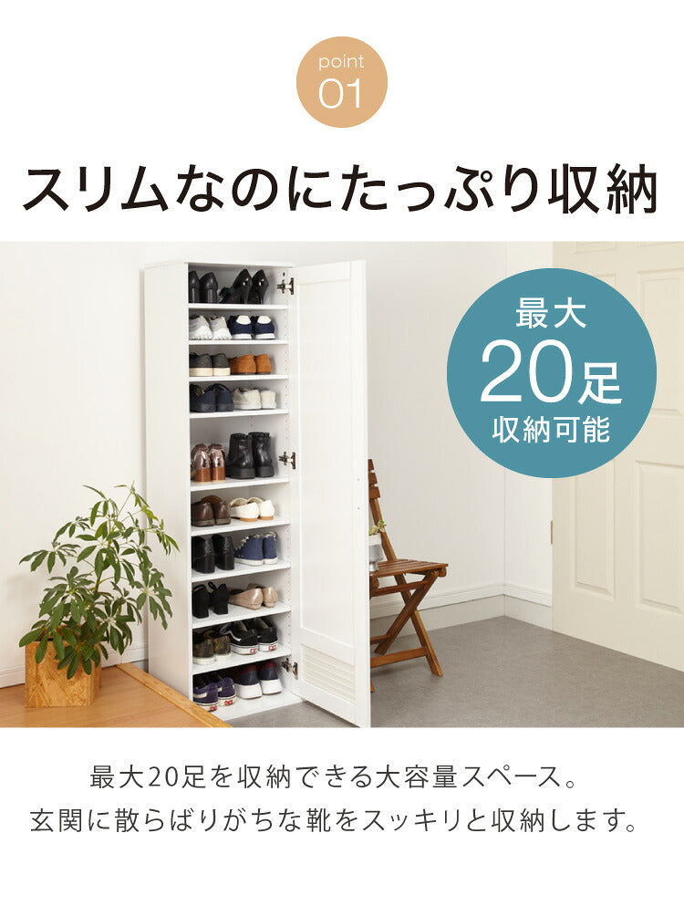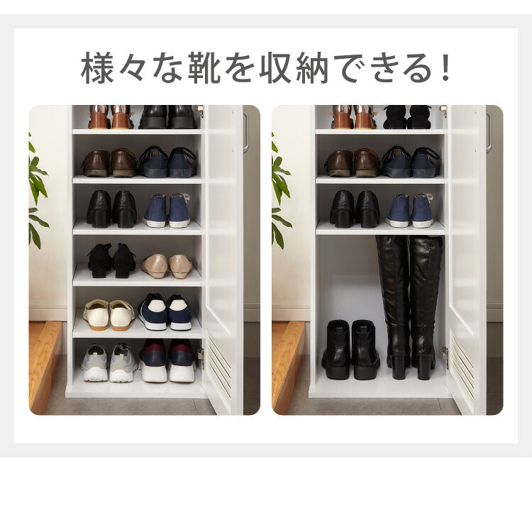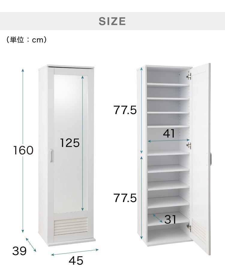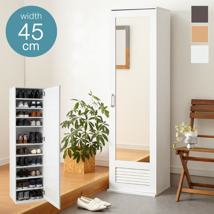 シューズラック ミラー付き ルーバー仕様 ハイタイプ 下駄箱 スリム 幅45cm 通気性 シューズボックス 鏡 姿見 棚板 可動式 靴 玄関 収納(代引不可)