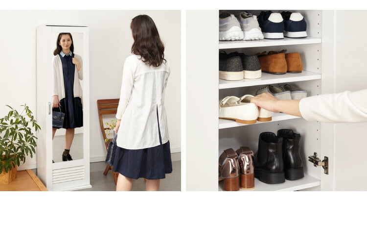 扉を閉めれば姿見として、開ければシューズボックスに変身。