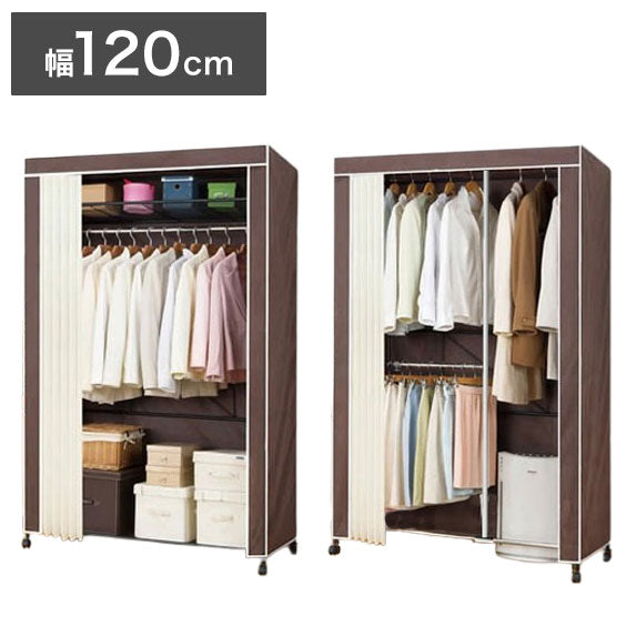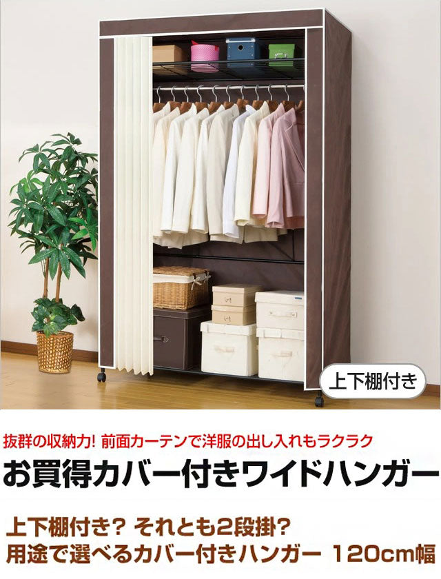 ハンガーラック、カバー付き、衣類収納、幅120cm、キャスター付き、ワイド、クローゼット、ワードローブ、洋服掛け、洋服ラック、洋服収納
