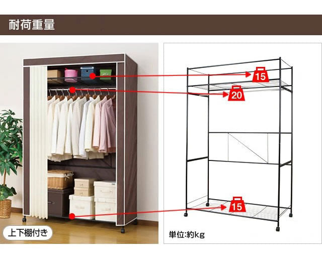 【耐荷重】ハンガーバー1本あたり約20kg、棚1枚あたり約15kg