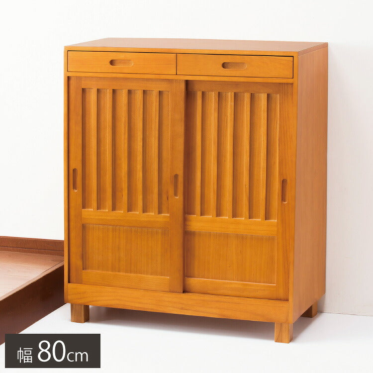 和風引き戸シューズボックス 2枚扉 天然木 幅80 奥行38 高さ95 シューズラック 下駄箱 靴箱 玄関収納 キャビネット 引き戸収納(代引不可)
