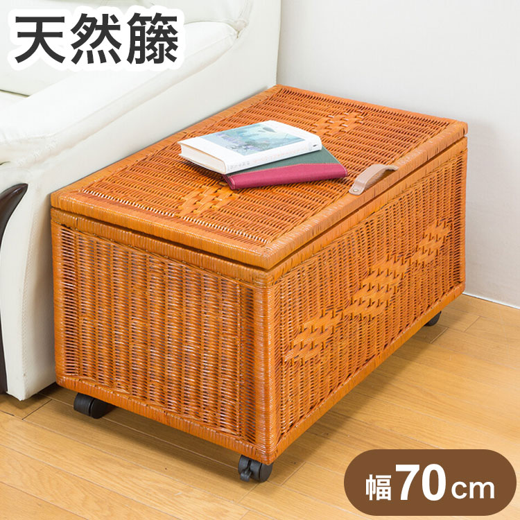 天然籐 ラタン収納ボックス キャスター付き 幅70 奥行40 高さ40 収納ケース 収納バスケット フタ付き 収納(代引不可)