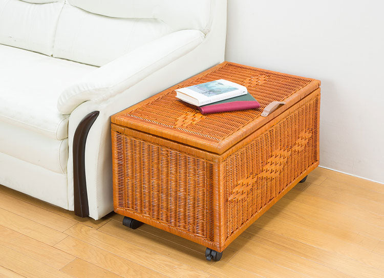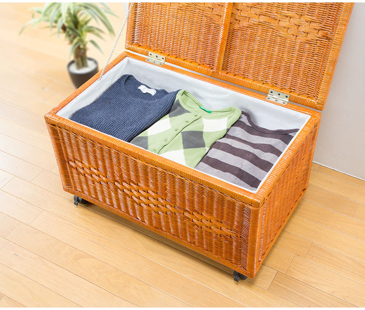 通気性がよく衣類やタオルの収納に便利な天然籐収納ボックス。
