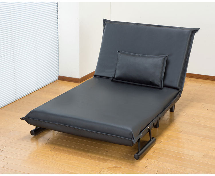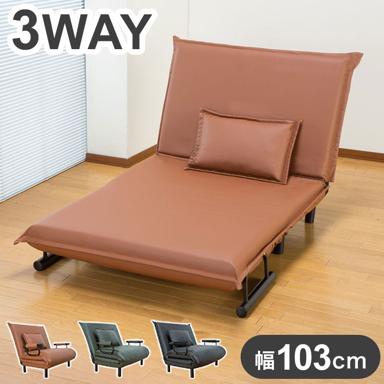 3WAYソファベッド 幅103cm 折りたたみ PVC生地 ソファーベッド ローソファ 14段階リクライニング カウチソファ クッション付き(代引不可)