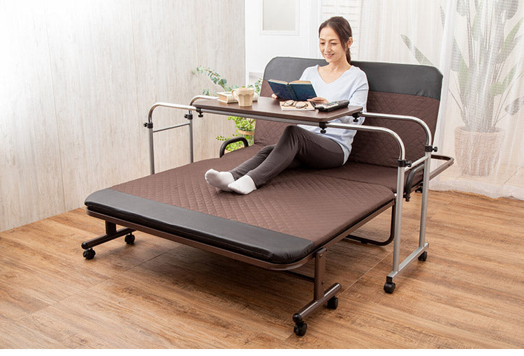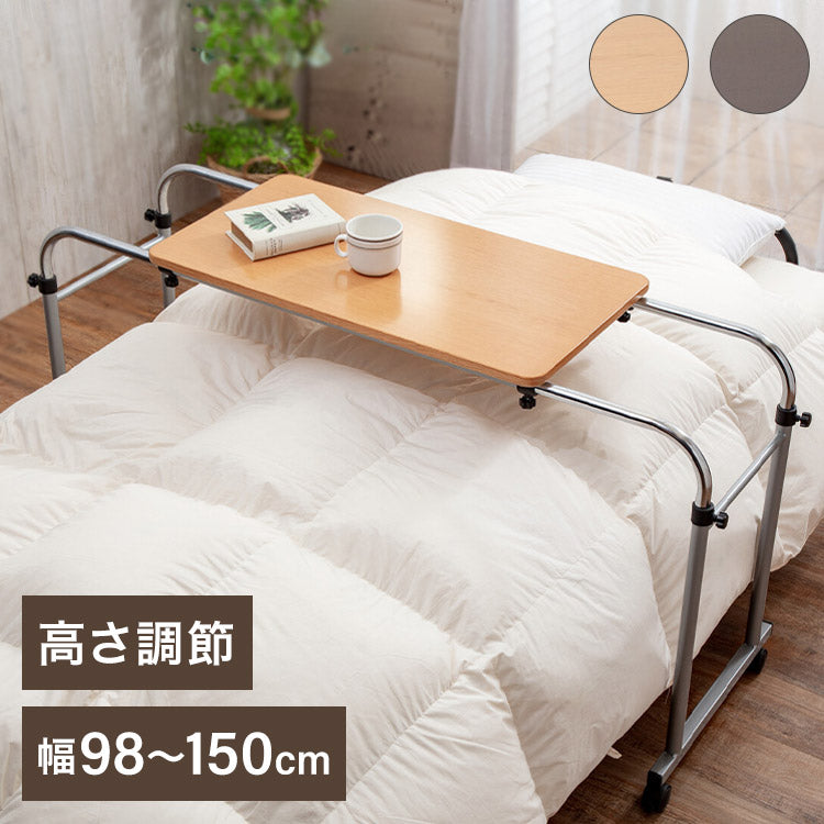 伸縮式ベッドテーブル 幅98~150 幅・高さ調節 伸縮式フリーテーブル キャスター付き ベッド リモートワーク 読書 食事 介助 介護(代引不可)