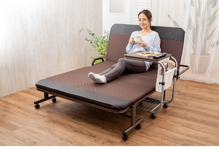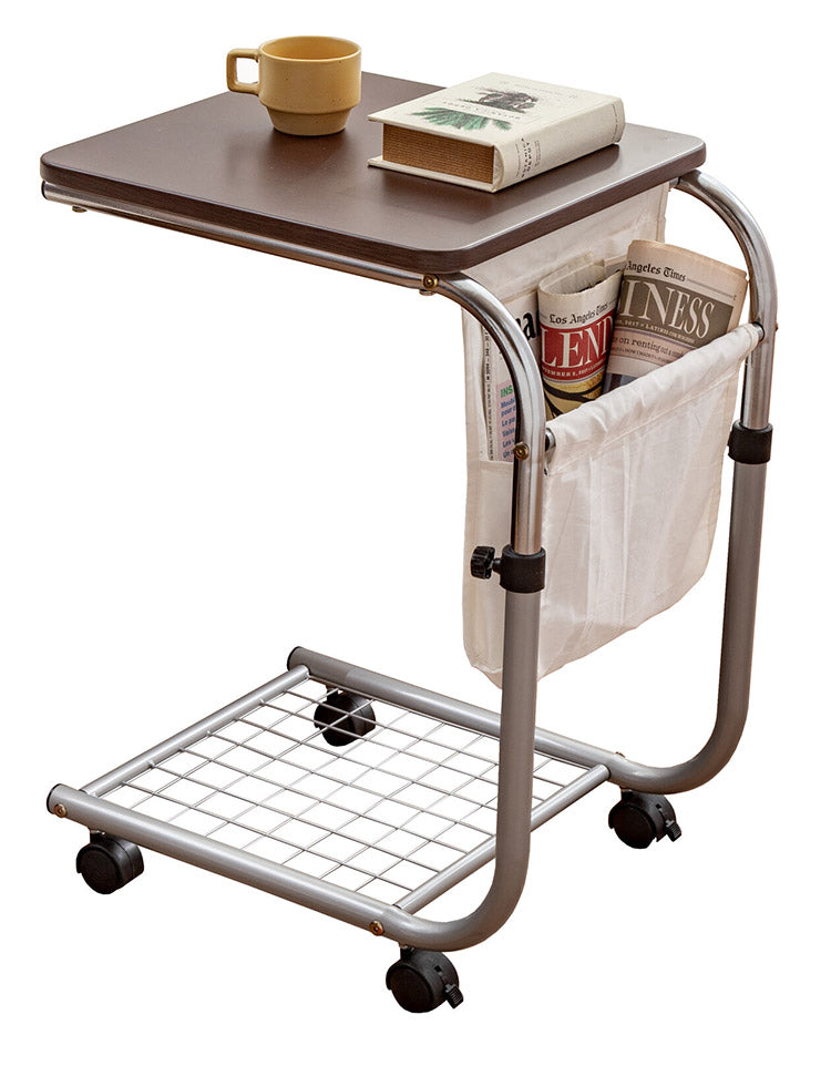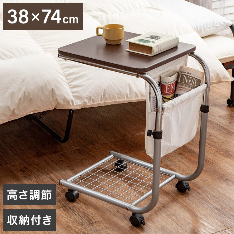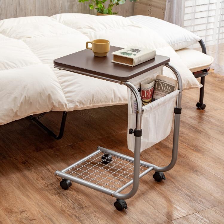 昇降式サイドテーブル 雑誌が入るポケット付き マガジンラック 高さ調節 キャスター付き ベッドサイド ソファサイド(代引不可)