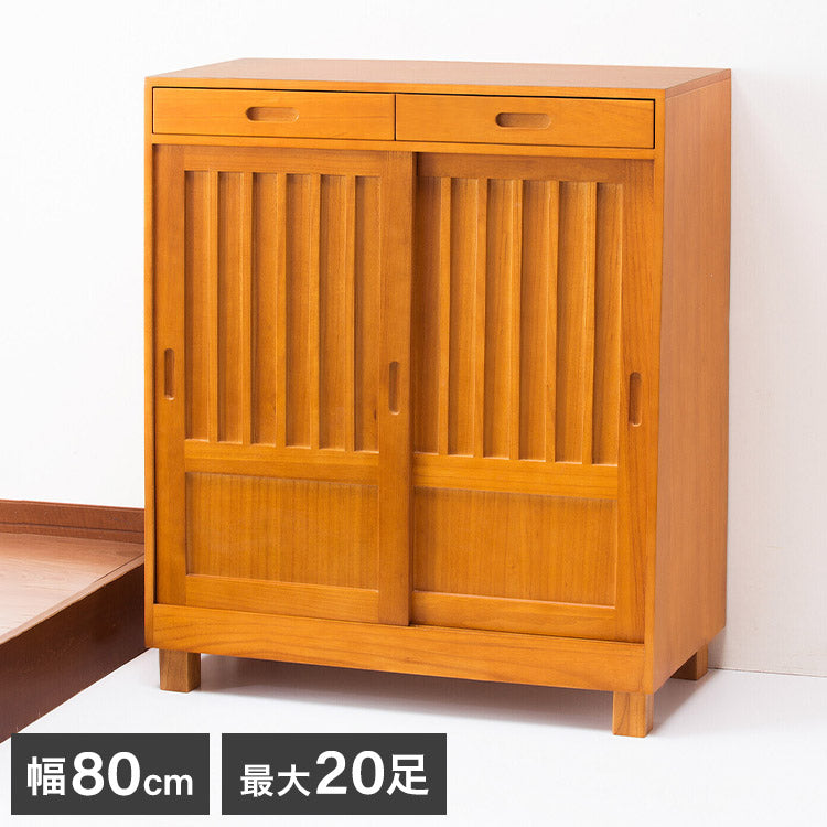 天然木 桐製 和風引き戸シューズボックス 幅80cm 2枚扉 大容量 シューズラック 靴箱 引き戸収納 木製 玄関収納 下駄箱 脚付き 棚 ラック シンプル(代引不可)