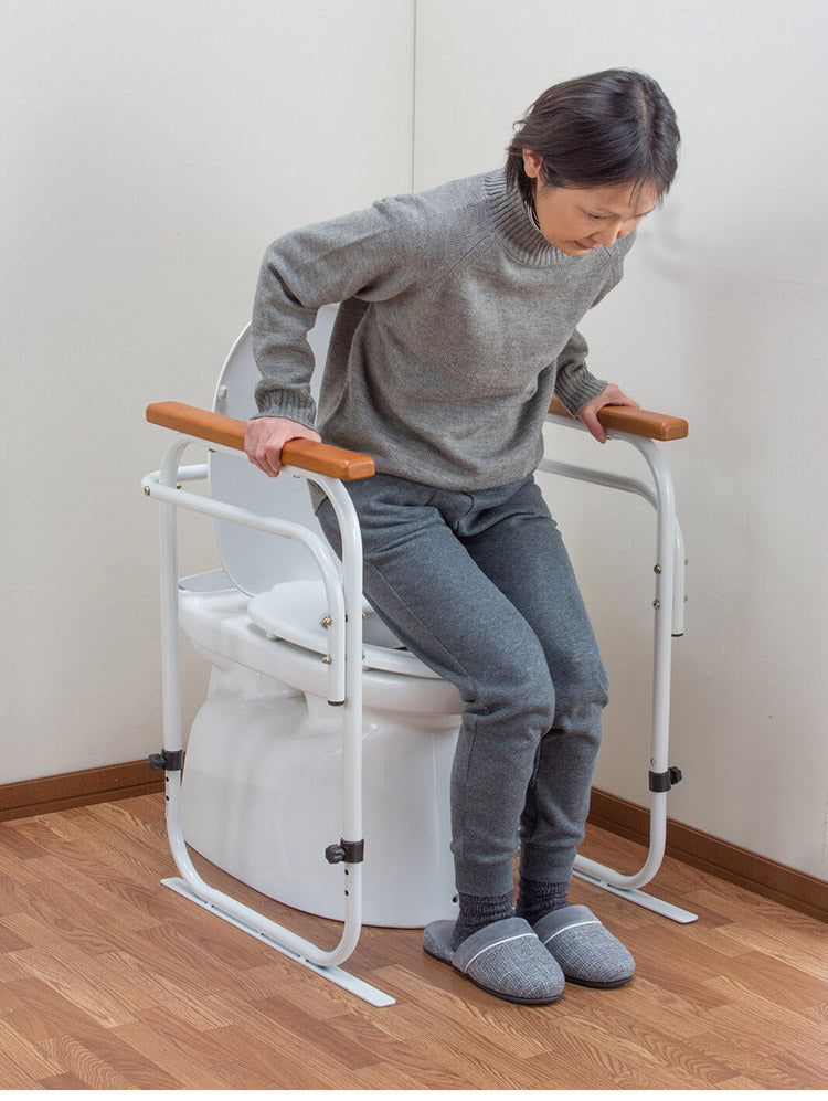 洋式トイレ据置用アーム トイレ用アーム 天然木 立ち上がりサポート手すり 高さ5段階調整 立ち座り 補助 手すり 介護 リハビリ トイレ 補助手すり お年寄り サポート手すり(代引不可)
