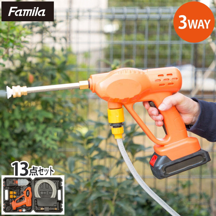 ファミラ 充電式コードレス3Way高圧洗浄機 直噴・拡散・泡モード 電動 高圧洗浄機 コードレス 充電式 網戸 ベランダ ドアサッシ お風呂 室外機 掃除(代引不可)