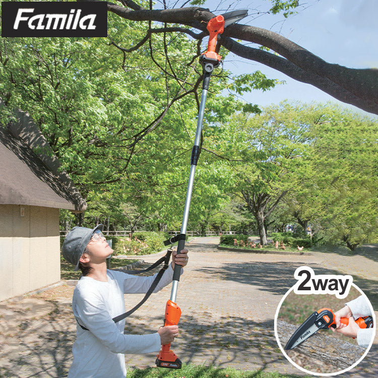 ファミラ NEW充電式コードレス2way高枝チェーンソー 充電式 電動チェーンソー 電動 チェンソー パワフル切断 庭 ガーデン 園芸(代引不可)