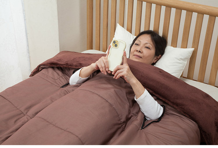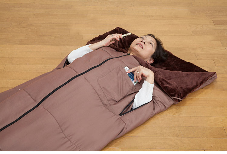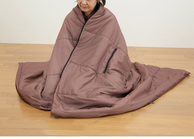寝袋 2枚組 着れる布団 ポケット付き 手が出せる 寝袋 掛け布団 着る毛布 ブラウン フリース素材 保温 蓄熱 アウトドア キャンプ ドライブ 車中泊 防災 災害 布団(代引不可)