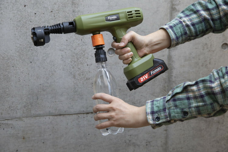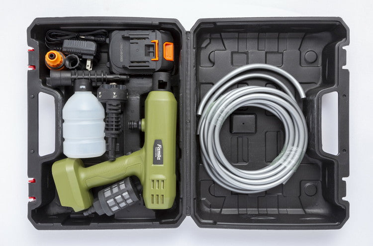 ファミラ 充電式コードレスハンディ高圧洗浄機 12点セット 軽量 コンパクト 持ち運び 高圧洗浄 掃除 クリーナー ノズル 6ヶ月保証(代引不可)