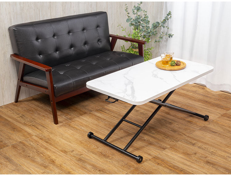 昇降テーブル リフトテーブル 無段階調節 完成品 折りたたみテーブル 大理石調 木目調 フリーテーブル 多目的 コンパクト 座卓 作業台 テーブル ダイニング リビング(代引不可)