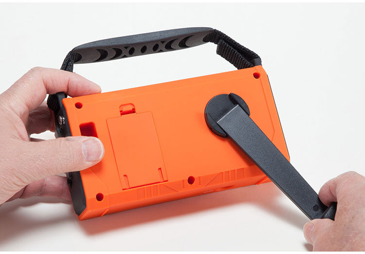 充電方法が3種類から選択可能(ソーラー充電、USB充電、手回し充電)