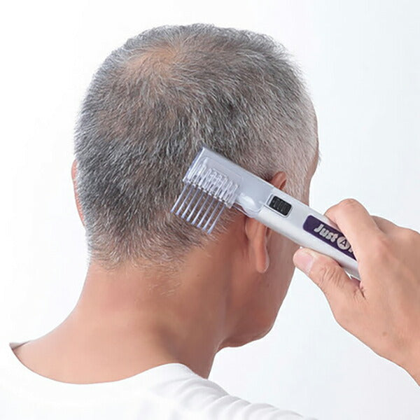 ●長・短2種類のアタッチメントでクシのようにとかすだけで髪の長さを均一に。後頭部や襟足も簡単にカットできます。
