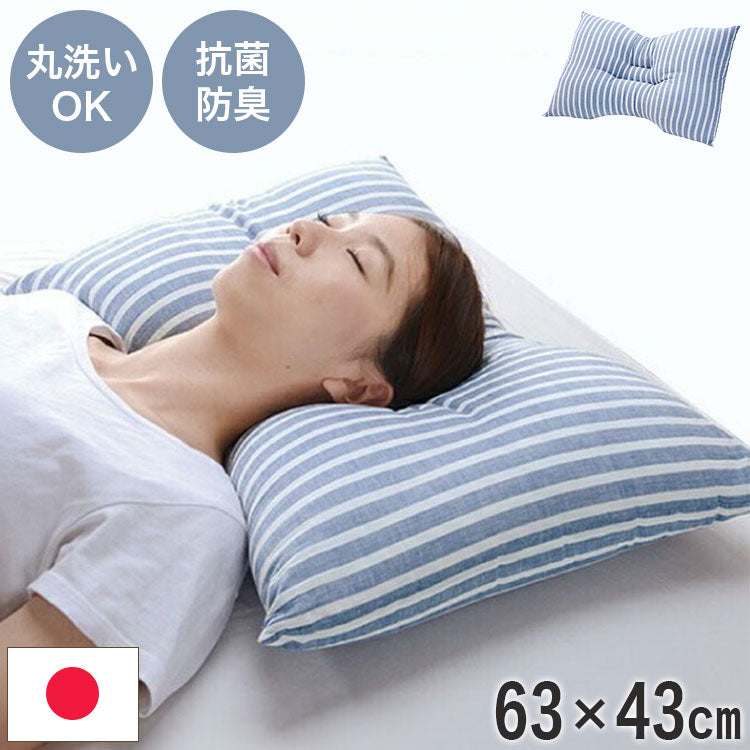 整体枕 抗菌防臭 頸椎安定 凹枕 丸洗いOK くぼみ 横向き枕 日本製 ピロー 東レ セベリス使用 かため やわらかめ 高め 低め 安眠 快眠 まくら マクラ 首こり 肩こり 洗濯機 洗える 綿100% 国産(代引不可)