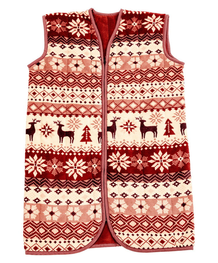 あったか着る毛布 ノルディック柄 吸湿発熱 毛布スリーパー ショート 65×100cm 北欧柄 エンジ グリーン 冬 あったか 着るブランケット(代引不可)