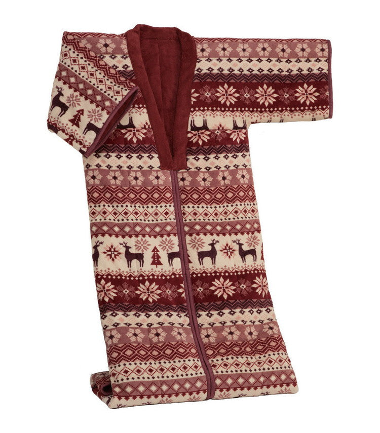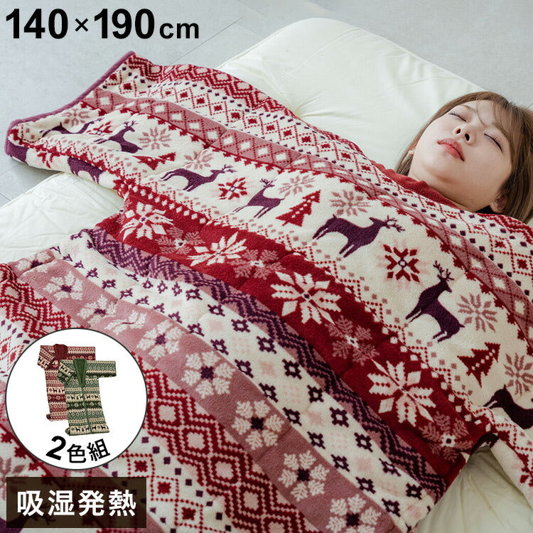 ノルディック柄 かいまき毛布布団 2色組 エンジ・グリーン 140×190cm 肩口からつま先まで スッポリガード 北欧柄 冬 あったか(代引不可)