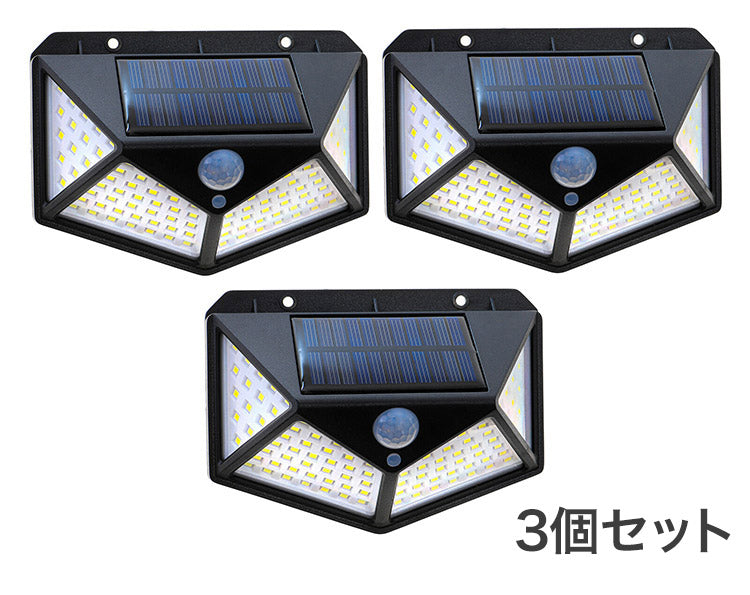 人感センサー LEDソーラーセンサーライト 3個セット 夜間の防犯対策に 4面発光 配線不要 玄関・庭照明・ガレージに 防犯対策 LEDライト センサーライト(代引不可)