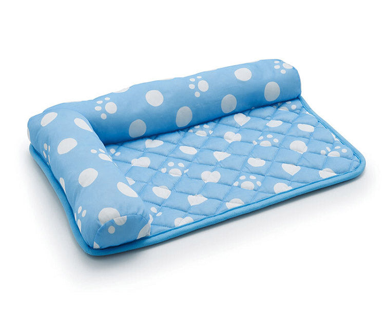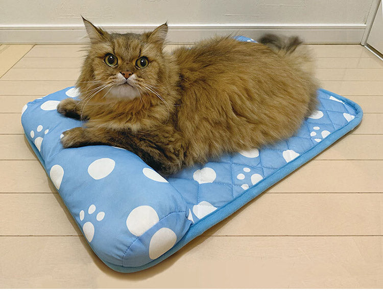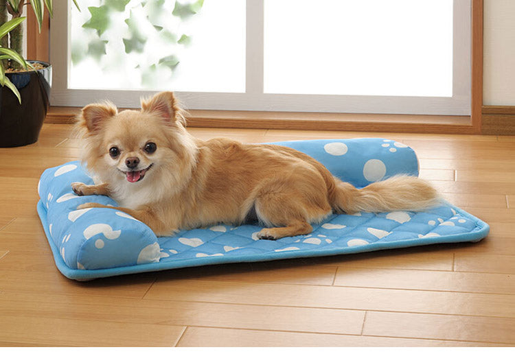 ペットマット ペット用布団 L字枕付き 40×60 接触冷感 足あと柄シリーズ 滑りにくい 冷感 夏の暑さ対策 手洗いOK 小型犬 犬 猫 ペット クッション ペット用品(代引不可)