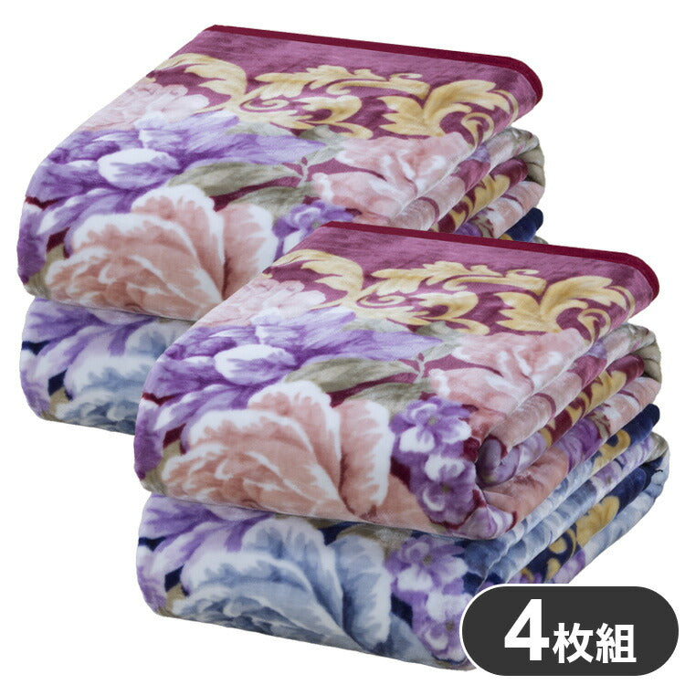 ニューマイヤー毛布 4枚組 ブランケット 花柄 掛け毛布 軽量 洗える 来客用 防寒 暖かい 保温 毛布 かけ布団 寝具 布団 あったか(代引不可)