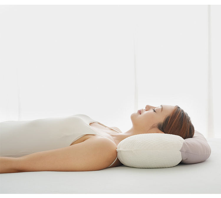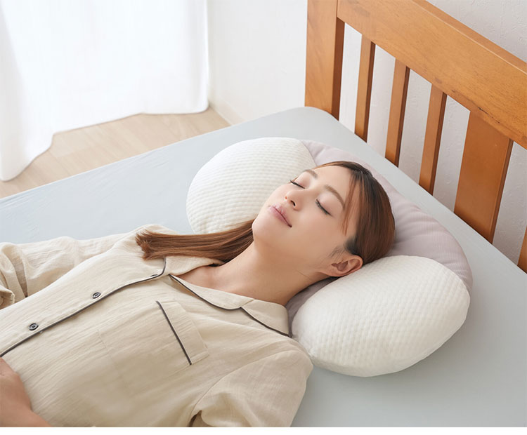 3種類の中材が頭と首を優しく支えて、正しい寝姿勢をサポートする快眠まくらです。
