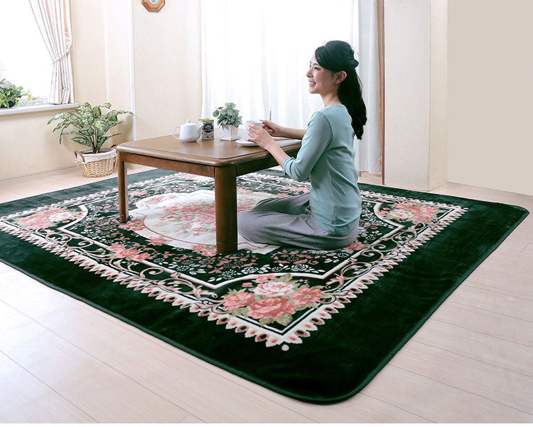 ボアカーペット 3畳用 ラグ カーペット 丸洗いOK ホットカーペットカバー 王朝柄 ボア生地 ダイニングラグ フロアシート 敷物 リビング ダイニング 3畳(代引不可)