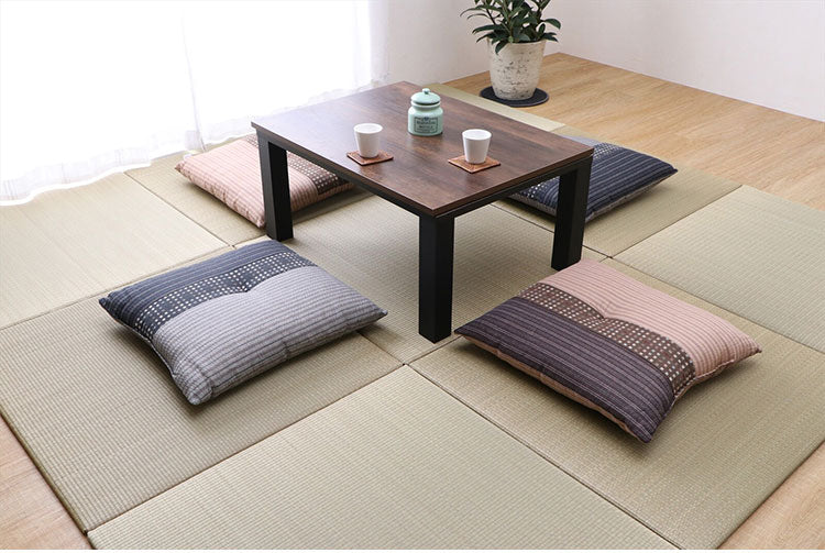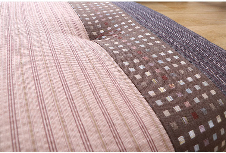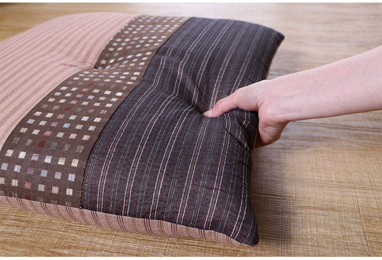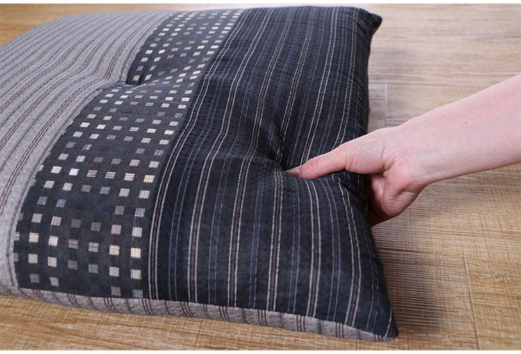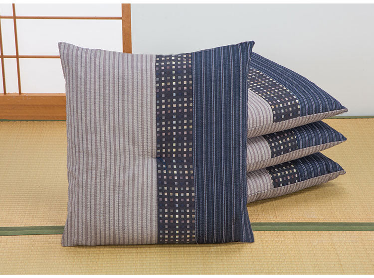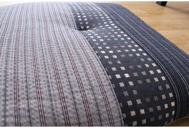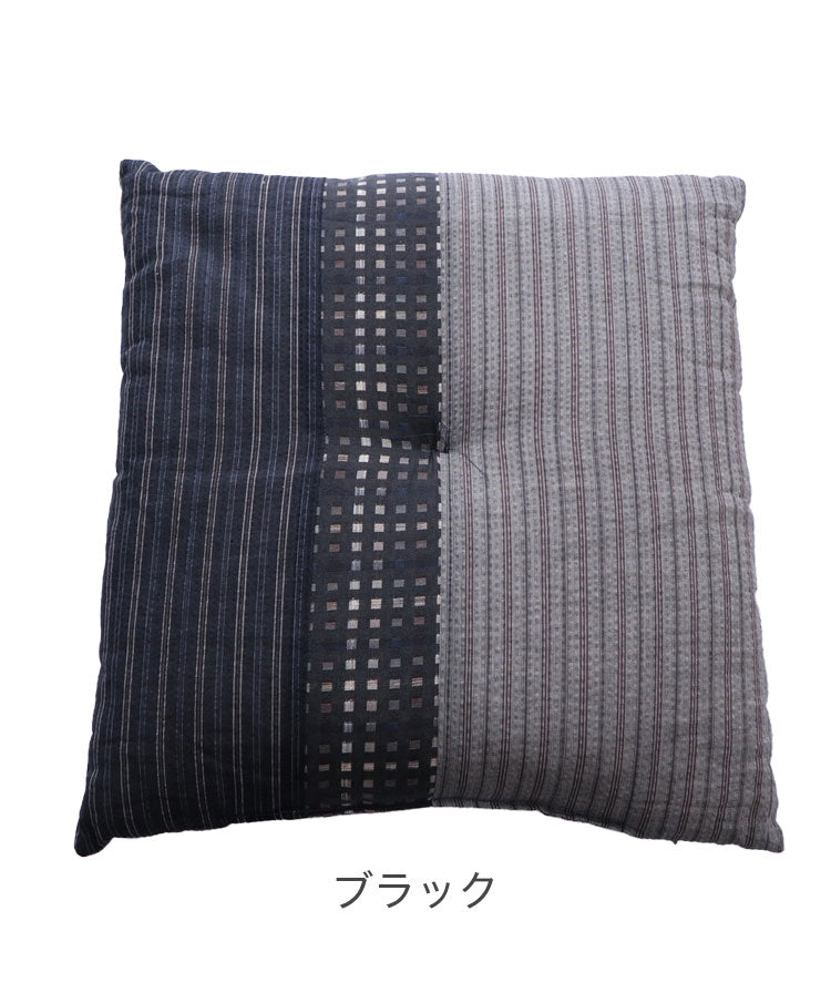 生地をパッチワークして和モダンに仕上げました。国内で丁寧に綿入れを行い、ふかふかの座り心地です。