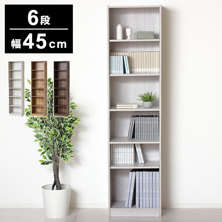 大容量本棚 幅45cm 6段 工具不要 組立簡単 可動棚 本棚 シェルフ オープンラック 木目 ブックシェルフ ラック コレクションケース ナチュラル おしゃれ 大容量 A4ファイル(代引不可)