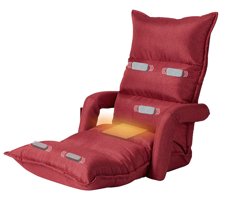 厚みのあるふかふかクッションの座椅子に5ヵ所の振動マッサージと身体を温めるヒーター搭載。多彩なリクライニング機能でお好みの姿勢でくつろげます