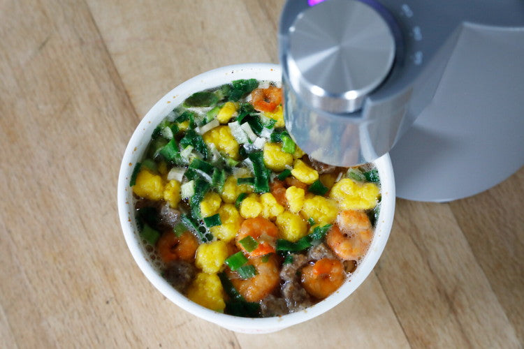 500mlのペットボトルをセットしスイッチを押すだけ。お好みの温度のお湯を使う分だけ給湯。