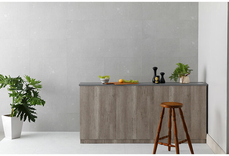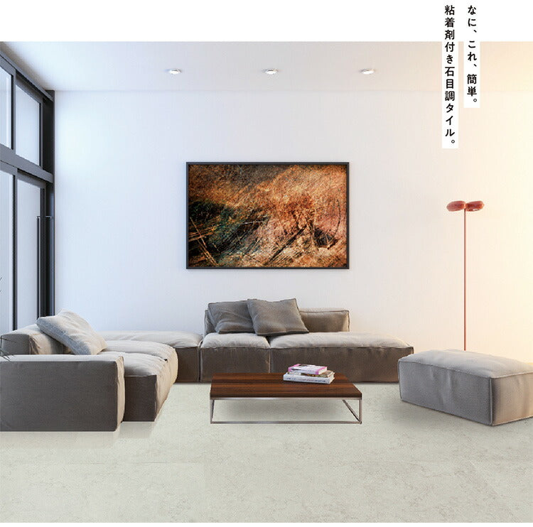 空気のように軽い石目調タイルです。裏面が接着剤付きで施工も簡単、接着剤や専門工具も不要です。カッターで自由にカットができるので手軽に石目調の雰囲気を楽しめます。