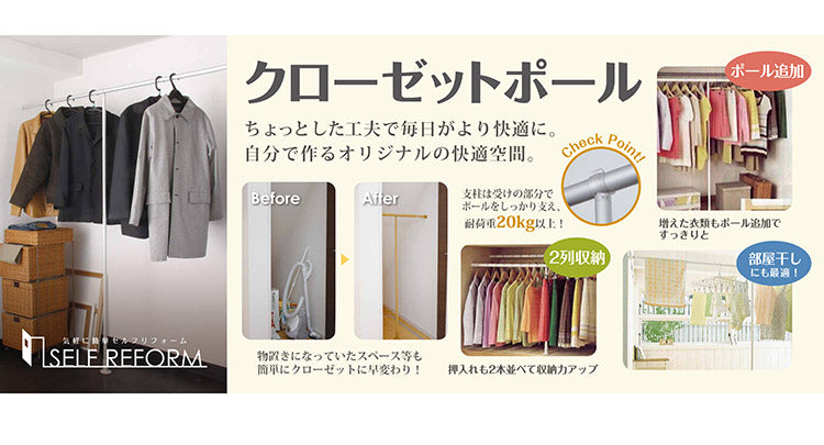 KRクローゼットポール 1.2~2m 伸縮可能 2m 突っ張りハンガー アルミ製 サポートポール付き 物干し竿 取付簡単 ハンガーラック 伸長式 クローゼット 押入れ 部屋干し 室内 衣類収納(代引不可)