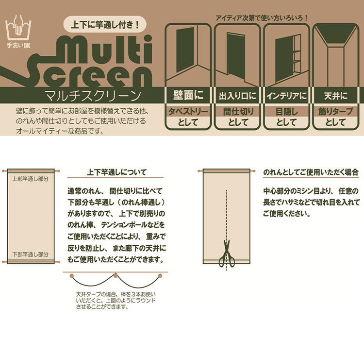 マルチスクリーン 85×200cm 手洗い可能 間仕切り 目隠し おしゃれ タペストリー 飾りタープ リビング 脱衣所 キッチン 玄関 壁掛け 天井(代引不可)