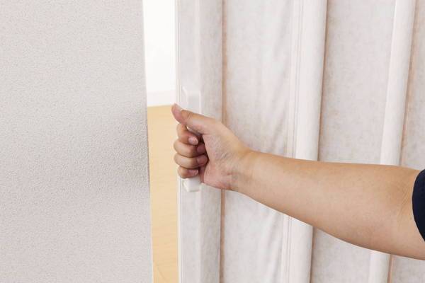 丈詰めできる大型取っ手の木目調アコーデオンドア