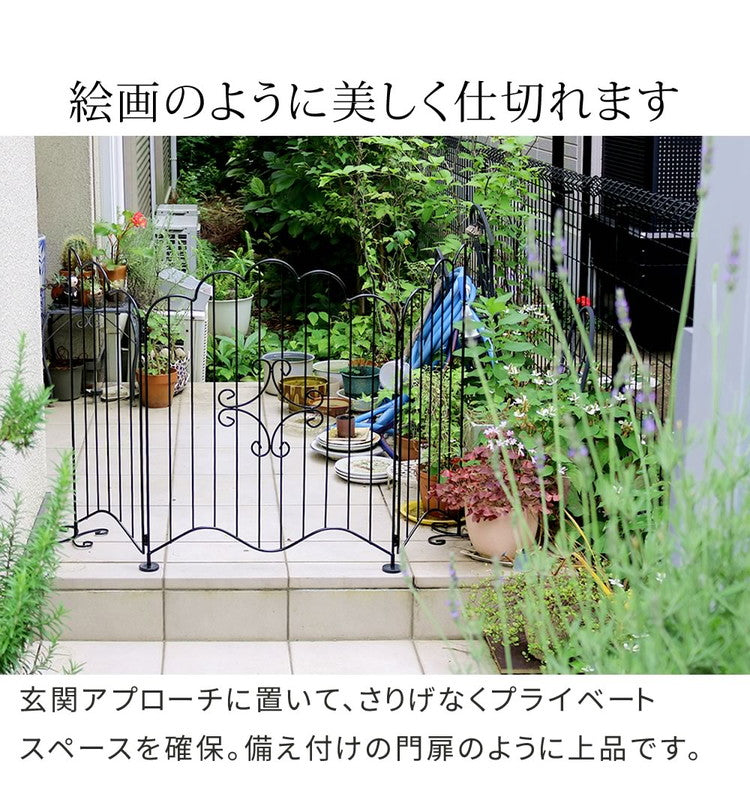 美しい欧風スタイルの置き型アイアンフェンス。ガレージ、お庭、玄関アプローチ等、おしゃれに空間を仕切れたら、ガーデンプランがさらに広がりますよ。