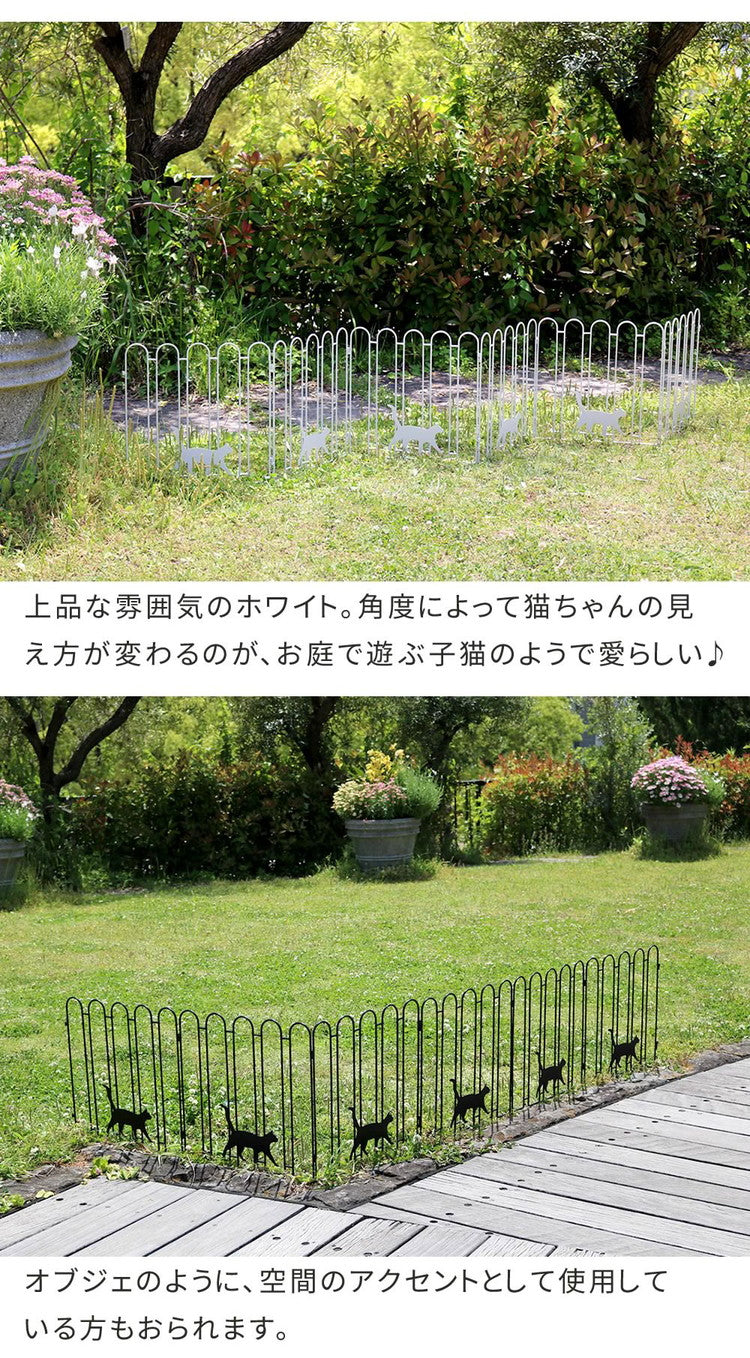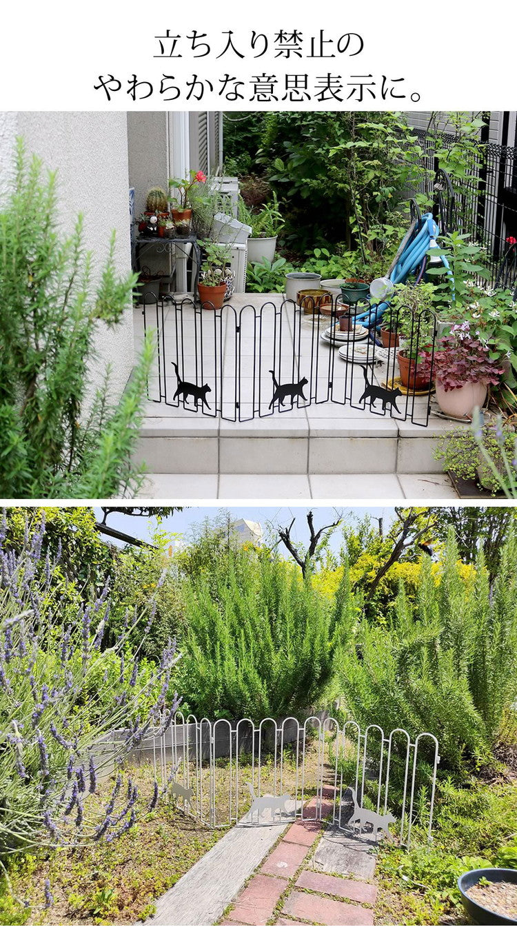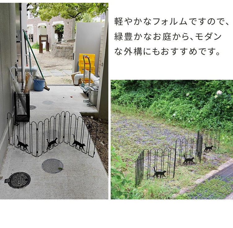 折り畳めるアイアンフェンス(猫3連) 2枚組 ブラック ホワイト NK120-2P ガーデニングフェンス ガーデンフェンス キャット ネコ 猫 パーテーション 置くだけ 折りたたみ式 小型 柵 枠 仕切り(代引不可)