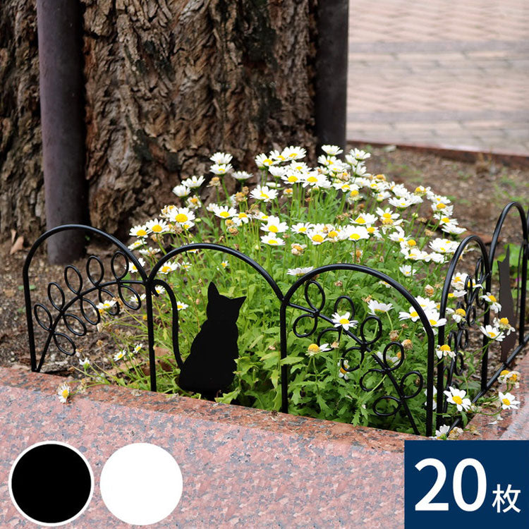 アイアンフェンス ミニ(猫) 20枚組 ブラック ホワイト NK7238-20P ミニフェンス ガーデニングフェンス ガーデンフェンス 挿すだけ 小型フェンス ネコ 猫 パーテーション 柵 枠 仕切り(代引不可)