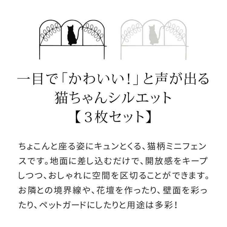 アイアンフェンス ミニ(猫) 3枚組 ブラック ホワイト NK7238-3P ミニフェンス ガーデニングフェンス ガーデンフェンス 挿すだけ 小型フェンス ネコ 猫 パーテーション 柵 枠 仕切り 境界 境目(代引不可)