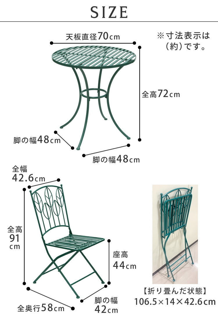 テーブルはコンパクトで使い勝手のいい幅70cm。お庭の片隅や