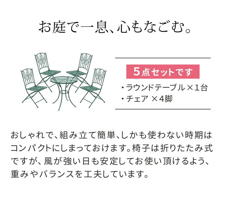 アイアン製ラウンドテーブル5点セット Sunny Leaf(サニーリーフ) SPL-9000C-5PS ガーデンファニチャーセット ガーデンテーブルセット 円形 円型 丸型 簡単組立 組立式 テーブル 円卓 チェア 4脚(代引不可)